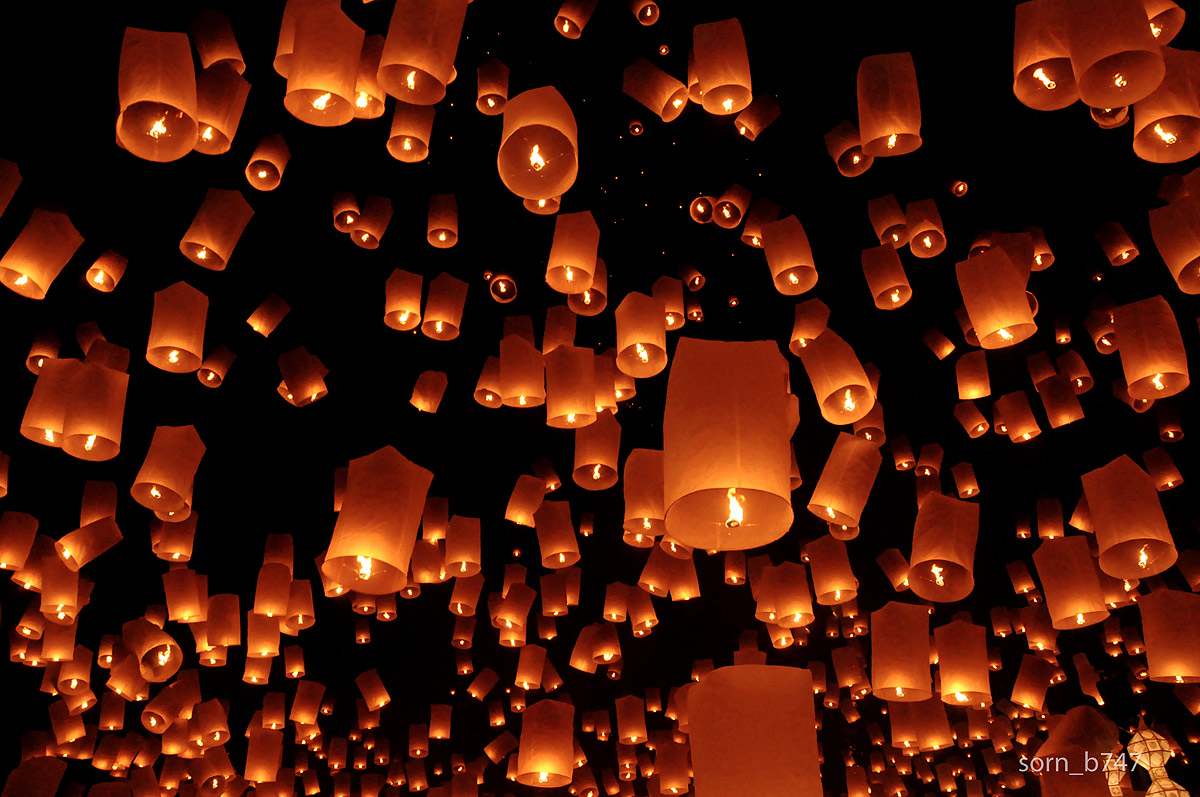ที่มีความเชื่อในการปล่อย โคมลอยซึ่งทำด้วยกระดาษสาติดบนโครงไม้ไผ่แล้วจุดตะเกียงไฟตรงกลางเพื่อให้ไอความร้อนพาโคมลอยขึ้นไปในอากาศเป็นการปล่อยเคราะห์ปล่อยโศกและเรื่องร้ายๆต่างๆ